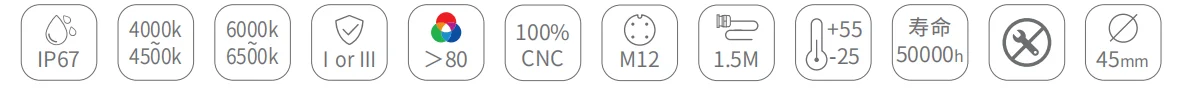 | Diameter | Ø45mm | ||